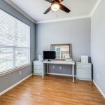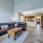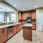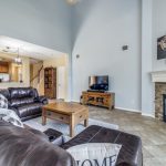 This family-friendly home in Panther Creek has been well cared for and has all the features you have been looking for. Pretty brick and stone exterior leads to 2-story entry with an adjacent bright home office with French doors and big windows. Directly across from the office, which would make a great craft room, as well, is the nice sized dining room with direct access to the kitchen. Cabinets abound in the open kitchen with center island, pantry, stainless steel appliances, including gas range, smart can lights, and a large bar to the breakfast area. The two-story ceiling in the downstairs living area makes it feel so large. There’s a perfect wall for entertainment and a fireplace with gas logs.