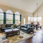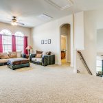 Two story ceiling in Large Den or Family room is dramatic and shows off the floor to ceiling stone fireplace, gas logs, and cedar mantel. This room also includes beautiful recent hardwood floors. The Two living areas upstairs include an Open Game room with wet bar and huge shelved game closet that leads to walk-out floored attic space and a Media room over the garage that is wired for sound with speakers and includes tiered seating.