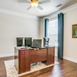 The Study, or Formal Dining, at the Entry, has recent new hardwood floors, crown molding and is attached to large Kitchen through a pretty & practical butlers pantry. Inside the Kitchen, you will see a large granite island, gas stainless steel appliances, including two ovens, microwave, and separate gas cooktop. There’s also a great walk-in pantry and bar to open eating area.