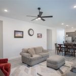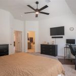 Beautiful stone and brick exterior with stained cedar garage door, uplights, and accent lighting for great curb appeal. Inside, wood look tile flows throughout. The formal dining room is perfect for large gatherings. The eat-in kitchen features stainless steel appliances, pendant lighting, and an oversized walk-in pantry. Enjoy an Aquasure whole-home water treatment and softener system for cleaner, softer water and longer-lasting appliances. Open floor plan with a breakfast bar and spacious living area filled with natural light from a wall of windows. The primary suite offers a large walk-in closet, double vanity, soaking tub, and separate shower. Relax or grill on the covered back patio with roll-down shade. Large backyard ideal for kids or pets. Neighborhood amenities include a pool, clubhouse, basketball court, splash park, walking and bike trails, playground, dog park, and open pavilion with restrooms.