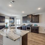 From the moment you arrive, the curb appeal of this beautiful home is very apparent. The combination stone and brick elevation, coupled with matching landscape borders, covered front porch, and two dormers invite you into this wonderful home. Four bedrooms and two baths, the 4th bedroom is currently being used as a study, but makes a great bedroom with oversized walk in closet. Luxury vinyl plank throughout living, dining, kitchen, and study is easy to maintain and scratch resistant. Dining room is large enough for big gatherings, and opens to living area which showcases a beautiful flush hearth gas fireplace. Primary bedroom is split from the others to ensure privacy. Functional kitchen with gorgeous upgraded granite tops and gas cooking. Breakfast nook with additional cabinets makes a perfect spot for a buffet if you are entertaining a large group. Extended back patio can accommodate just about anything you want to do. Direct view of park without ever leaving your back yard!