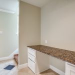 The large Living area has a wall of windows, beautiful wood floors and is wired for sound with 2 installed Pioneer Elite 12” ceiling speakers + wiring for more speakers. The kitchen is on 2nd Floor with Living and Dining rooms and has granite countertops, travertine floor, tons of custom cabinets, center island with power, stainless steel appliances, (including convection oven and side by side refrigerator that stays with the property) and great corner pantry. Don’t miss the smart storage under the stairs on this level.