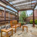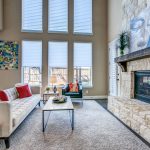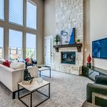 Additionally, downstairs you’ll also find a powder bath for guests, formal dining with a tall ceiling and lots of natural light, and the gourmet kitchen opens to the family room with soaring ceilings, beautiful 2-story stone fireplace and wall of windows to the pretty landscaped backyard with flagstone covered patio and second patio with arbor.