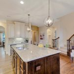 You’ll enjoy using the stainless steel appliances in the kitchen while cooking up a storm on the gas range. Light is not an issue with under cabinet lighting and pretty pendants hanging over the large center island with more light-colored granite counters. There’s also many glazed kitchen cabinets + drawers for easy storage under the range and a huge walk-in pantry.