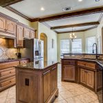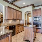 The open Kitchen with two entry points boasts granite counters, tile backsplash, breakfast bar, upgraded double ovens, large walk-in Pantry, crown moldings & pretty beamed ceiling. The pretty main living area has a wall of built-ins, new lighting, gleaming hardwood floors and a stone and brick wood burning gas fireplace.