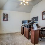 Split Master suite is oversized with vaulted ceiling, oversized walk-in shower, garden tub separate vanities and a great walk-in closet with seasonal storage, built-in cubbies and drawers, and even a built-in storage bench. Two other bedrooms are also downstairs and share a Jack-&-Jill style bath, each with their own sinks/vanity areas and private walk-in closets. The split 4th bedroom works great as a home office or guest suite with easy access to the 3rd full-sized hall bath that also serves as a convenient pool bath with direct access from the hall and the back patio.
