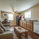 Lots of space and combined uses here – the 1200 approximate total square footage (per tax record) is partially air conditioned in the apartment. You can use the shop for storage and works well as a game room, with pool table and wood burning stove. There is upstairs storage in the shop and covered area outside for tractors and 4 wheelers. Attached to the shop is a recently remodeled efficiency apartment for teenagers or guests. The floors are stained concrete and it includes a kitchen area and full bath that has just been remodeled beautifully. The property also includes RV hook ups with water and electric service. Acreage is currently zoned agricultural and has cultivated hay field and additional storage shed for equipment. This property is tree lined and feels like your own private oasis!