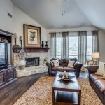 There is a pretty stone backsplash, gas cooktop, tons of cabinet storage, cute Breakfast Nook with window seat and even recently replaced stainless steel dishwasher and microwave. The Kitchen is Open to the large Family Room with vaulted ceiling, more hand scraped wood floors, beautiful stone fireplace and is also wired for sound. Wall of windows view private backyard and cute walkway lead to rear patio for grilling that is also wired for sound. You won’t need a huge backyard to take care of because the community pool, kids pool and private community stocked catch and release pond are conveniently located directly across the street right outside the front door of this home!